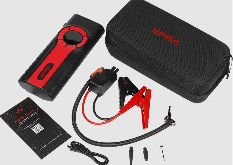 Оснащено аккумулятором высокой емкости, способным выдавать достаточный ток для запуска двигателей транспортных средств, включая легковые автомобили, грузовики и мотоциклы. Встроенный компрессор (10000mAh)