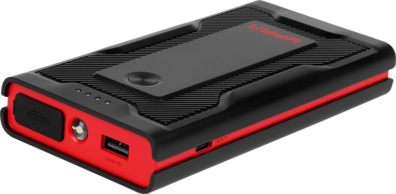 Оснащено аккумулятором высокой емкости, способным выдавать достаточный ток для запуска двигателей транспортных средств, включая легковые автомобили, грузовики и мотоциклы. Имеет встроенный светодиодный фонарик для освещения в условиях низкой освещенности.