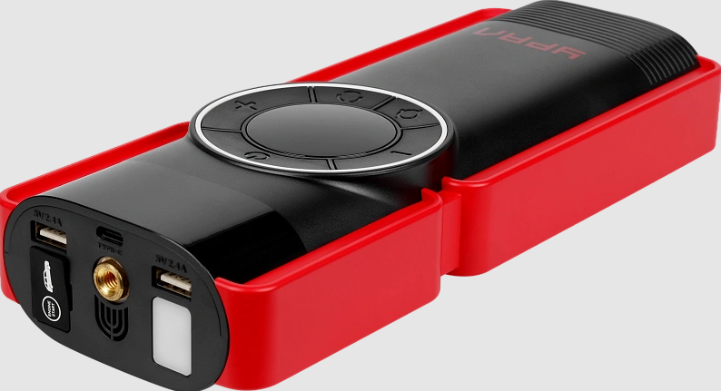 Оснащено аккумулятором высокой емкости, способным выдавать достаточный ток для запуска двигателей транспортных средств, включая легковые автомобили, грузовики и мотоциклы. Встроенный компрессор (10000mAh)